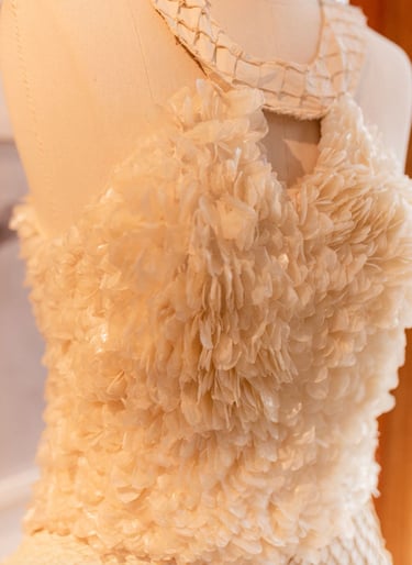 onde matéria, tempo e gesto se tornam parte da memória do vestido.