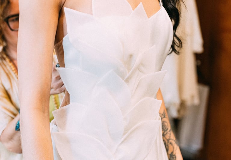Cada vestido nasce de um processo autoral, onde a criação é construída